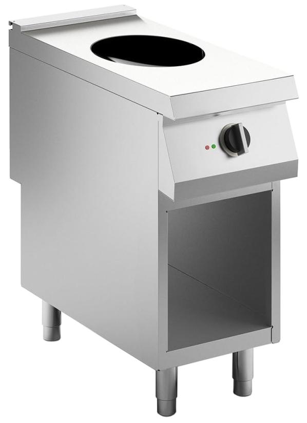 BTH 400 x 900 x 900 mm 400 V, 5,0 kW (1x 5,0 kW) 1 Heizzone 5kW, ø 30 cm Edelstahlkorpus Kontrollvorrichtung Mit offenem Unterbau Gerät aus Edelstahl AISI 304 Wokinduktionskochfläche mit Cuvette für Wokpfannen Mit 10-Stufen-Schalter Punktinduktion mit Zentral er Topferkennung Tiefe inklusive abgeschrägter Bedienblende 920 mm | |
