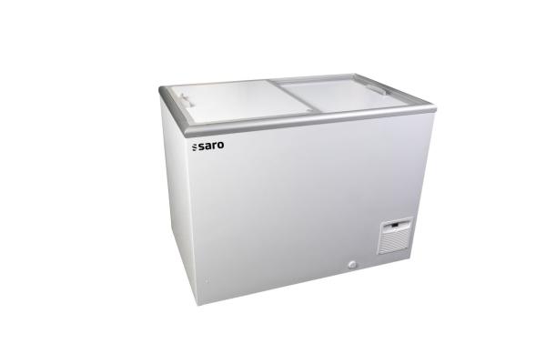 Speiseeis-/Tiefkühltruhe Modell CUBE 35-2BD100A - 481-1000(Art.-Nr.: 055.03.006)Hersteller/Großhändler Saro BTH 1094 x 694 x 867 mm -16 °C bis -13 0,12 kW, 230 V - Material: (Gehäuse + Innenraum) Stahl, galvanisiert, weiß; (Schiebedeckel) isoliert mit hochwertigem Aluminiumrahmen - 2-geteilter Schiebedeckel, mit Selbstschließmechanismus im letzten Teil - Gefriertruhe konzipiert für verpacktes Speiseeis (auch für andere Lebensmittel nutzbar) - Körbe (max. 3) optional bestellbar (481-3000) - Lieferung steckerfertig (Schukostecker Typ F) - Digitales Thermometer - Manuelle Temperaturregelung (im Innenraum - schon voreingestellt) - Isolierung: 77 mm (Polyurethan) - Statische Kühlung - Manuelle Abtauung - Geeignet für Umgebungstemperaturen von +16 bis 35 °C - Anschluss: 230 V / 1 Ph. / 50 Hz / 0,120 kW - Inhalt (brutto/netto): 331 / 265 Liter - Innenmaße: B 936 x T 536 x H 688 mm - 4 Rollen, feststellbare Rollen nur optional erhältlich - Gewicht (netto/brutto): 53 / 57 kg - Kältemittel: R290 - Energieeffizienzklasse: D (Spektrum A bis G) - Optionen auf Anftrage: * abschließbar * verschiedene Korbarten * Trenn-/Sortierhilfen * Glasaufsätze für Direktverkauf | |